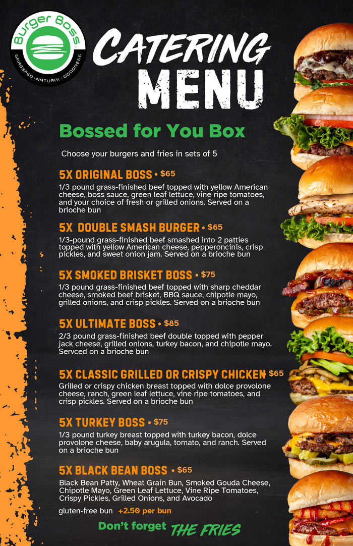 Take charge of your next event with our Bossed for You Box – premium grass-fed, grass-finished burgers crafted for quality, flavor, and ultimate satisfaction.
